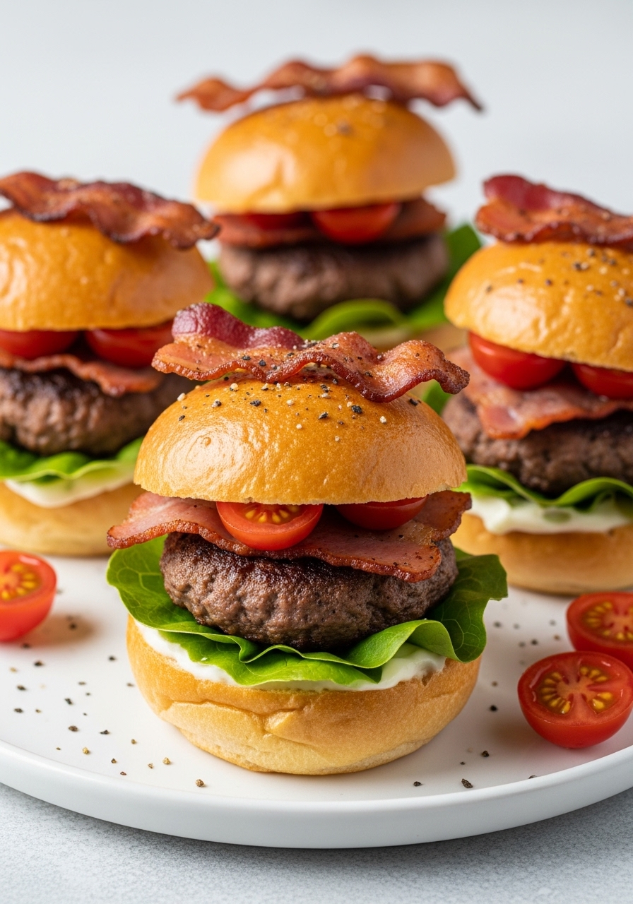 These delicious, mini bacon burgers cooked in an air fryer offer a fantastic low-carb snack – ideal for your Super Bowl gathering.