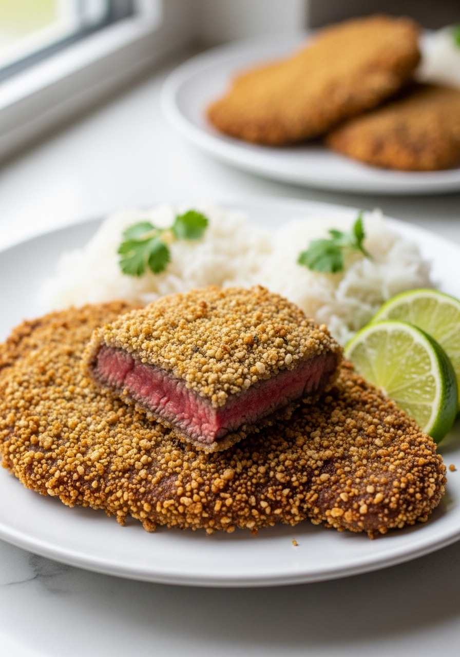 This air-fried breaded cubed steak, known as bistec empanizado, is a beloved dish from Puerto Rico. Preparing it in an air fryer not only simplifies the process but also makes it a healthier option!