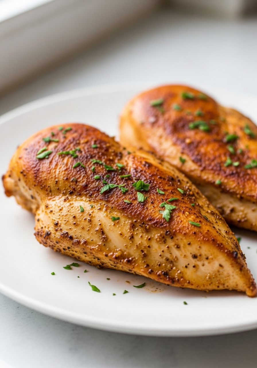Succulent and moist chicken breast prepared in the air fryer—loaded with protein, nutritious, and bursting with taste!