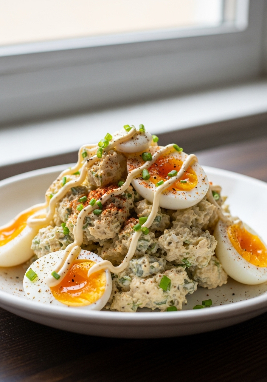 Garnish with a sprinkle of paprika and additional chives on top.