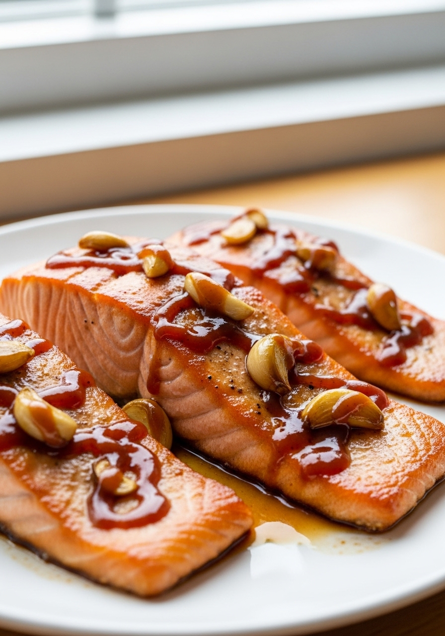 While the salmon cooks, pour the reserved marinade into a small saucepan and heat over medium-low heat. Allow it to simmer and reduce for 1 to 2 minutes until it thickens into a glaze, being careful not to let it dry out. Drizzle this glaze over the salmon just before serving.