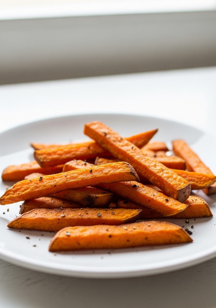 Finally, transfer the sweet potato fries to a large plate and serve them immediately alongside your preferred dipping sauce.