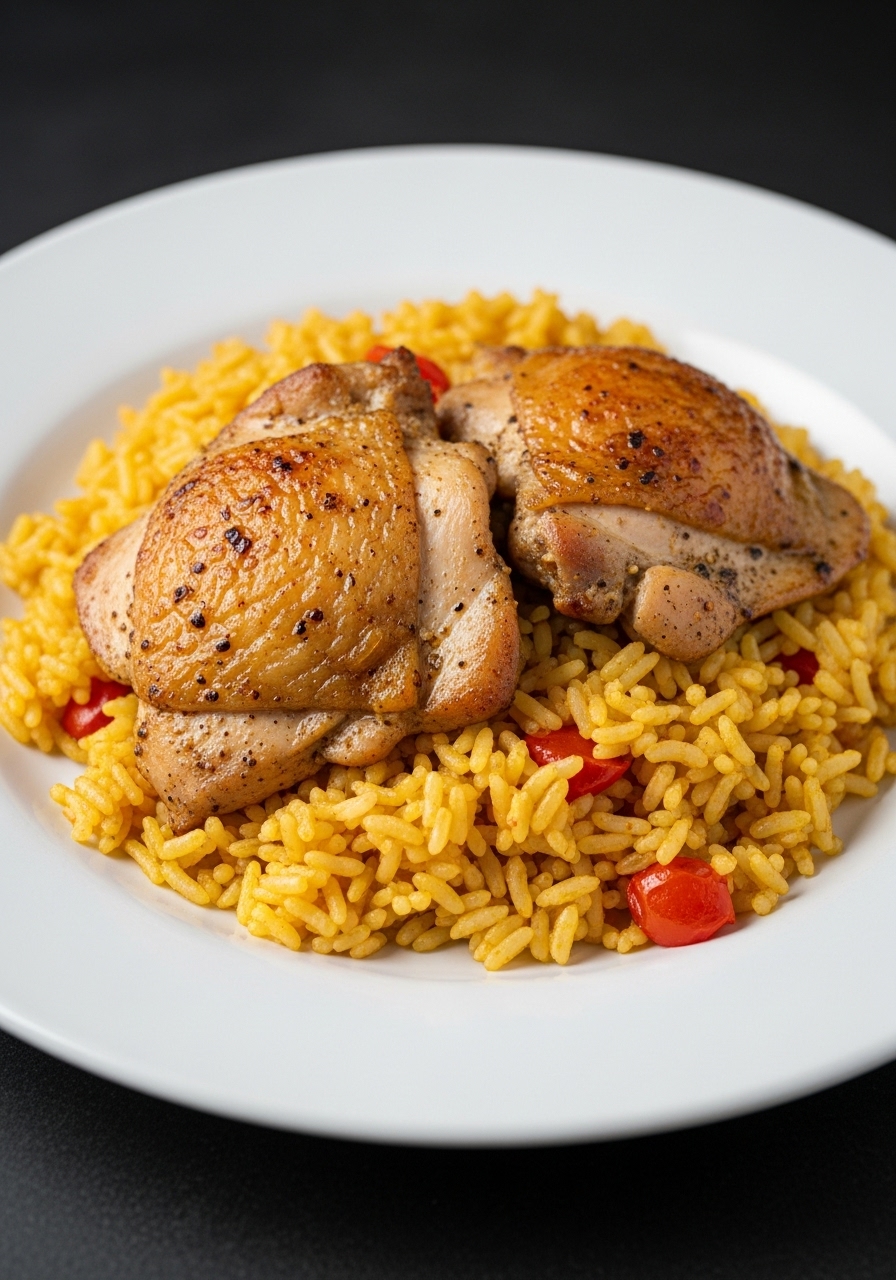 Return the chicken to the skillet, pressing it into the rice. Bring the mixture to a boil. Then, reduce the heat to medium-low and simmer until most of the water has evaporated and you observe bubbling at the surface of the rice. Lower the heat to low and cover tightly, ensuring no steam escapes (you can use a piece of aluminum foil or a paper towel between the lid and the pot if necessary).