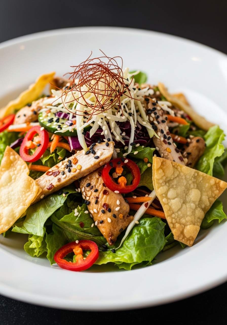 This vibrant Asian Chicken Salad features tender chicken, crunchy Napa cabbage, juicy mandarin oranges, creamy avocado, and crispy wonton strips, all drizzled with a zesty chili crisp dressing. It’s an ideal choice for meal prepping!