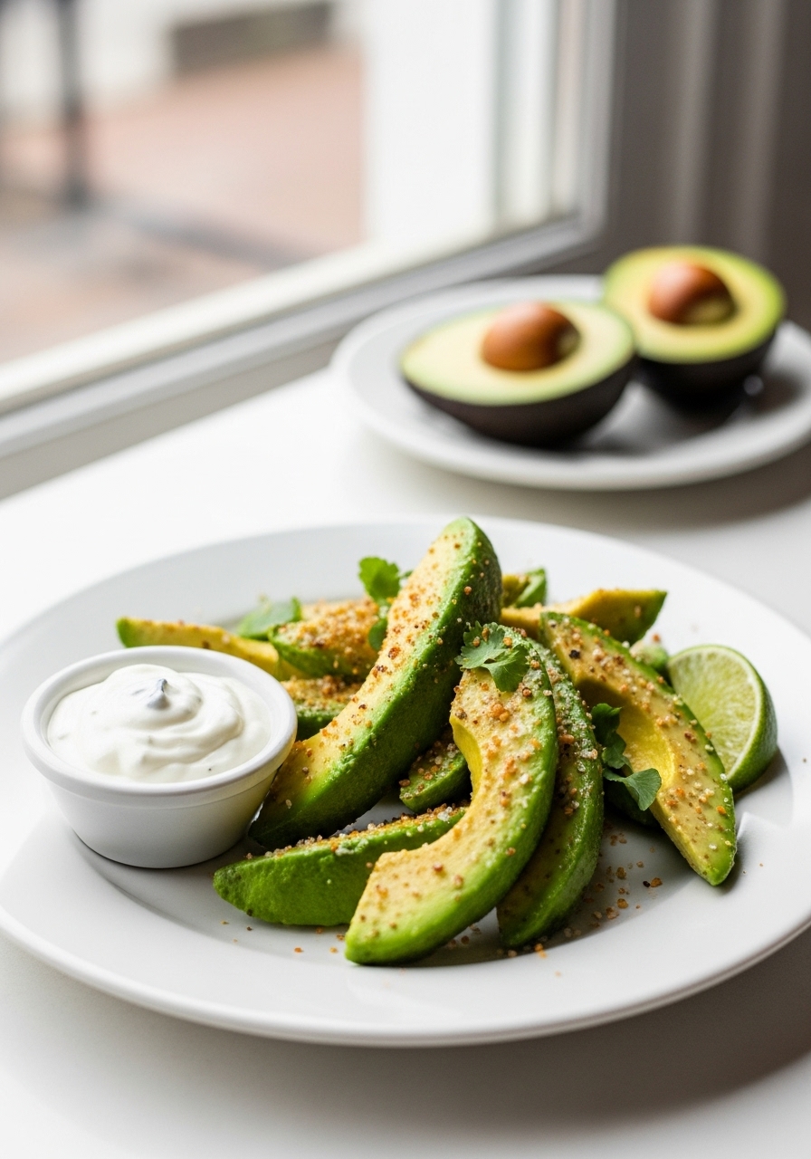 If you prefer baking, preheat your oven to 425°F (218°C), then follow the previous steps for coating the avocado. Arrange them on a baking sheet and bake until they turn golden and crispy, which should take about 10 to 15 minutes.