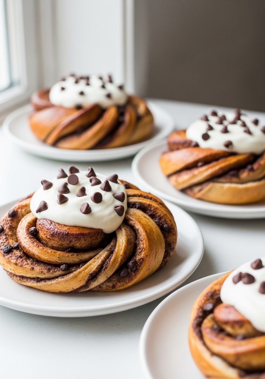 Indulge in these delightful Greek yogurt bagels, featuring a filling reminiscent of babka, composed of rich chocolate, sweet cinnamon, and sugar. They make for a perfect morning delight paired with your favorite coffee or can be enjoyed as a sweet dessert at any time of day.