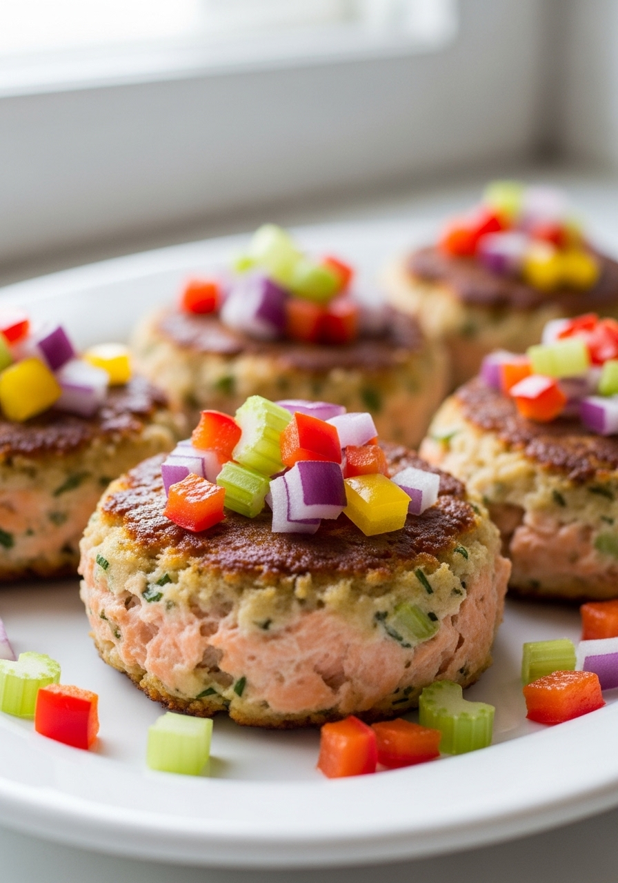 These oven-baked salmon patties are a delightful, nutritious option that makes for an ideal festive starter! Featuring wild Alaskan salmon, vibrant peppers, tangy capers, and breadcrumbs, they are complemented by a refreshing avocado dressing.