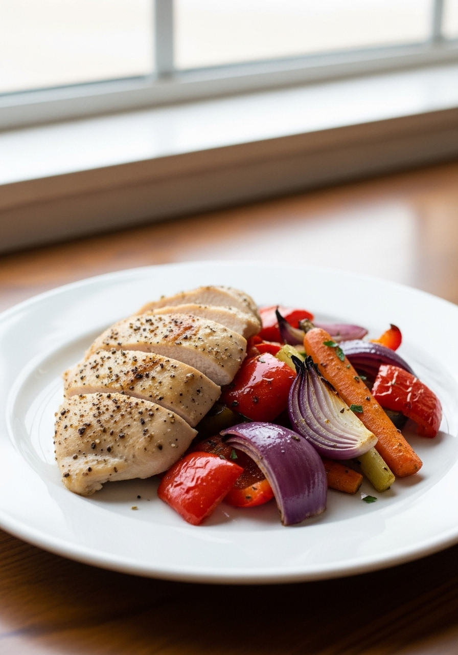 Savor the flavors of tender chicken and a medley of vegetables, all infused with the aromatic notes of sage and rosemary and enhanced by balsamic vinegar. This dish is baked to perfection in the oven, resulting in a wholesome and satisfying one-pan meal.