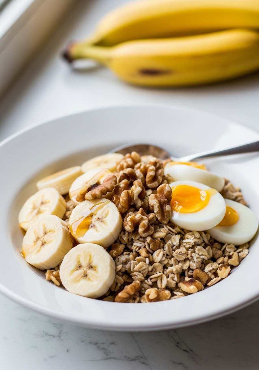 Indulge in this hearty bowl of oatmeal, brimming with protein and naturally sweetened by a perfectly ripe banana and a drizzle of maple syrup. By incorporating a vanilla protein shake and egg whites, this dish not only boosts the protein content but also transforms the oats into a delightfully creamy treat.