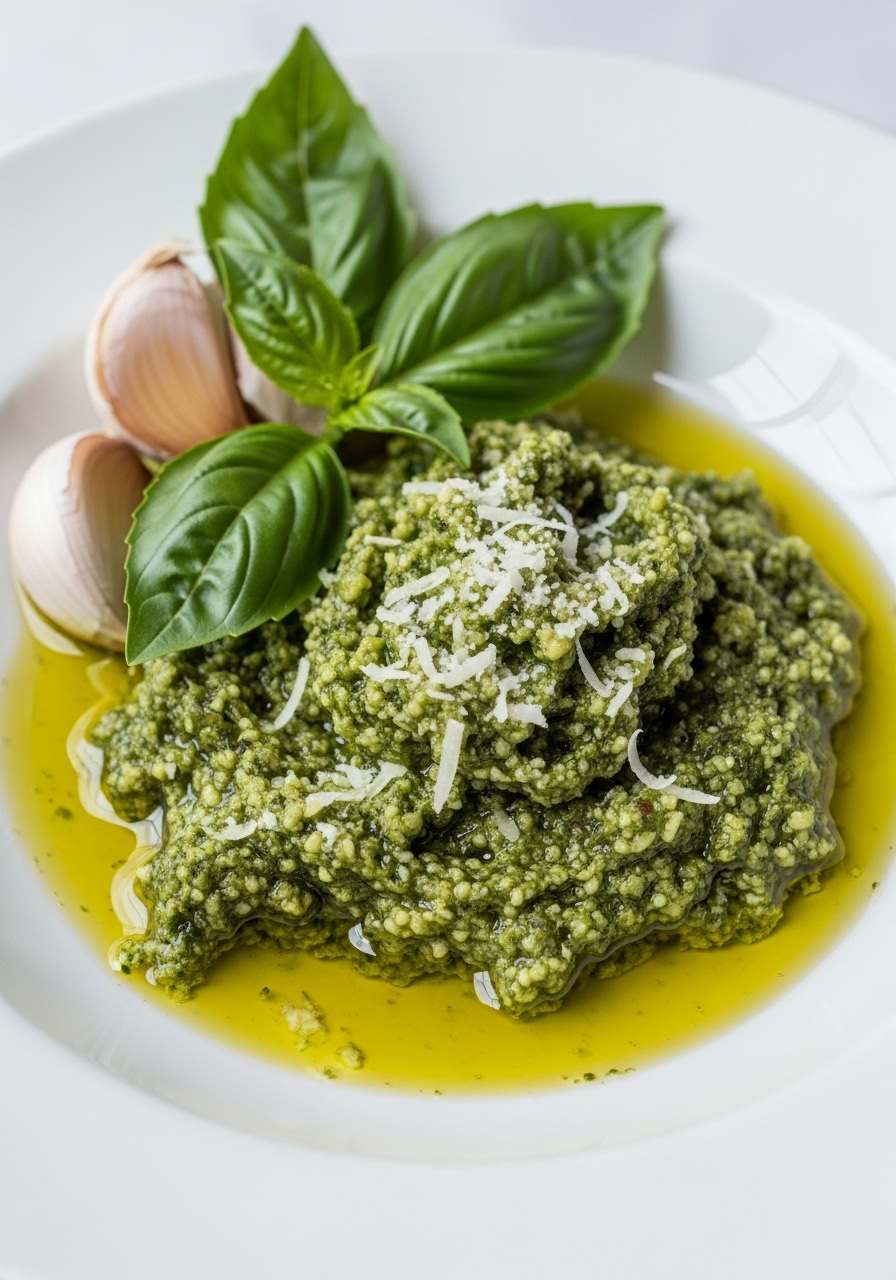 This vibrant basil pesto features a delightful blend of fresh basil, garlic, and Parmesan cheese. By omitting the pine nuts and cutting back on the olive oil, this version is lighter and more refreshing!