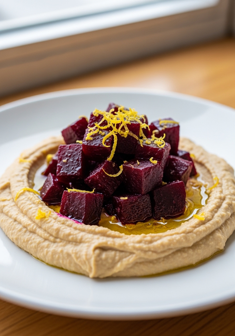 Incorporating roasted beets into your hummus results in a colorful, nutrient-rich dip that boasts a gentle sweetness, rich earthiness, and an added boost of fiber. This delightful Mediterranean spread not only tantalizes your taste buds but also offers anti-inflammatory benefits.