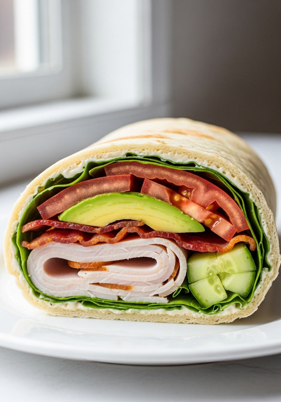 These simple Turkey and Avocado BLT Roll-Ups make an ideal choice for a school lunch.