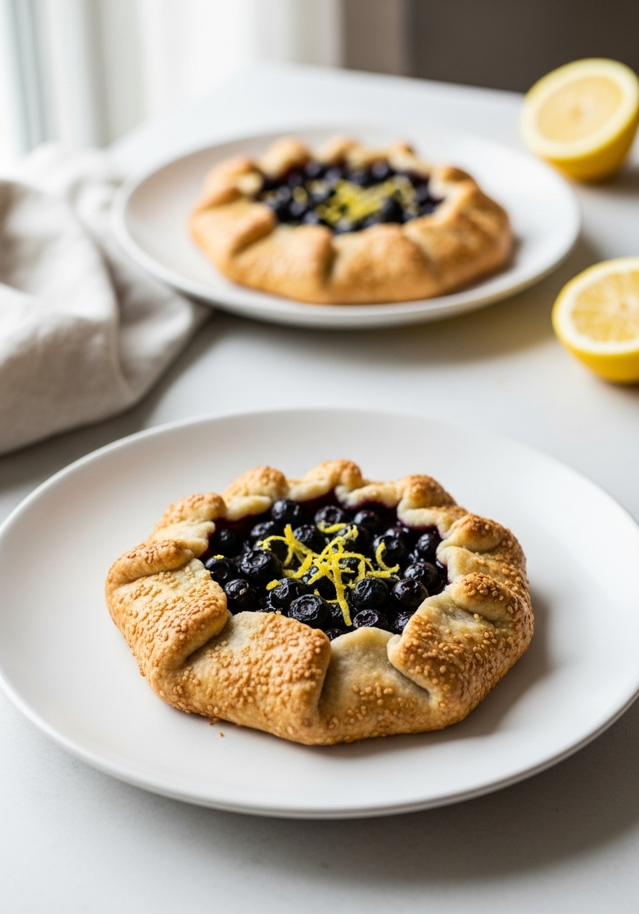 In a mixing bowl, combine ¼ cup of monk fruit or sugar with lemon zest and flour, whisking them together. Gently fold in the blueberries along with the lemon juice, ensuring they are well coated; allow this mixture to rest for 15 minutes.