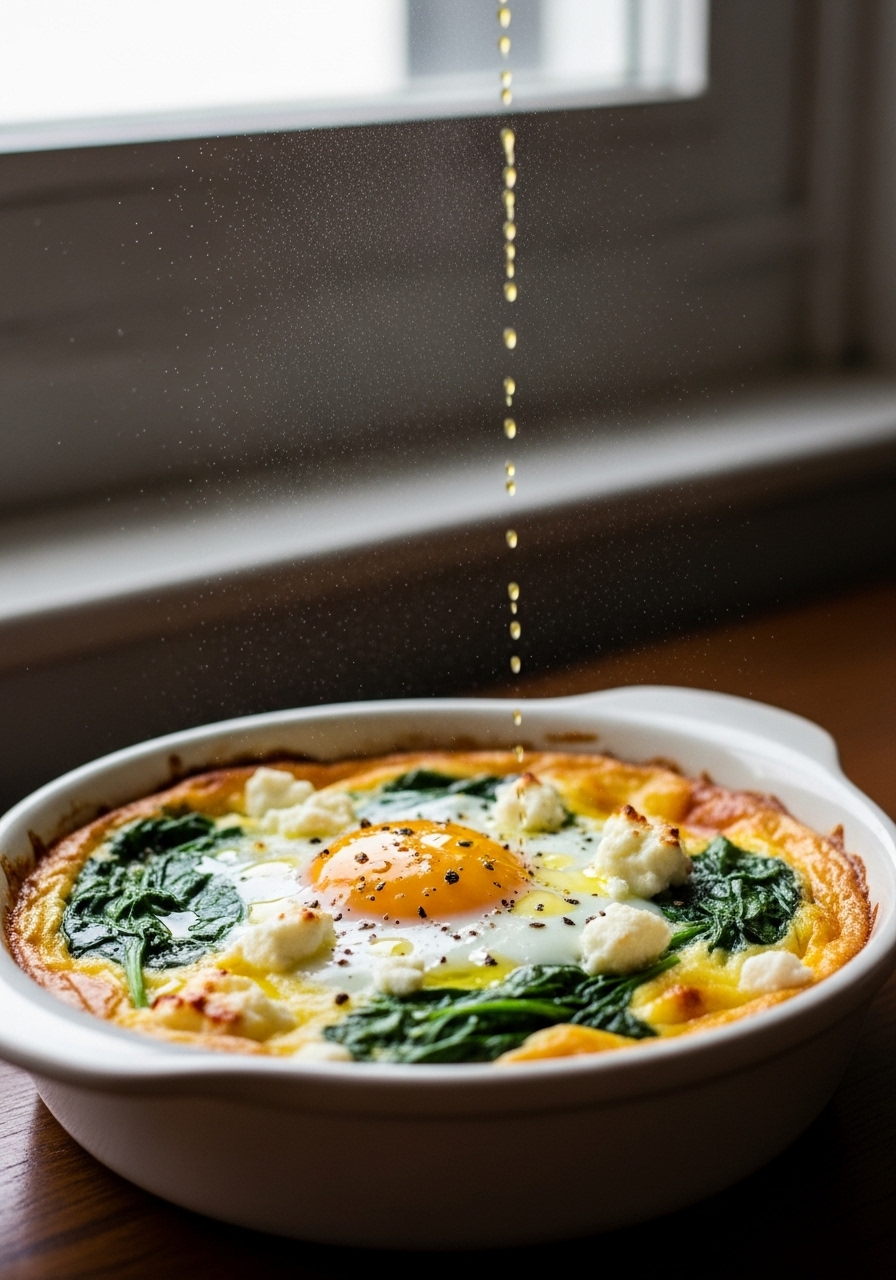 "Prepare a delightful Breakfast Casserole featuring a blend of eggs, fresh spinach, juicy tomatoes, and creamy Feta cheese. This simple and quick recipe can be ready in just a matter of minutes!"