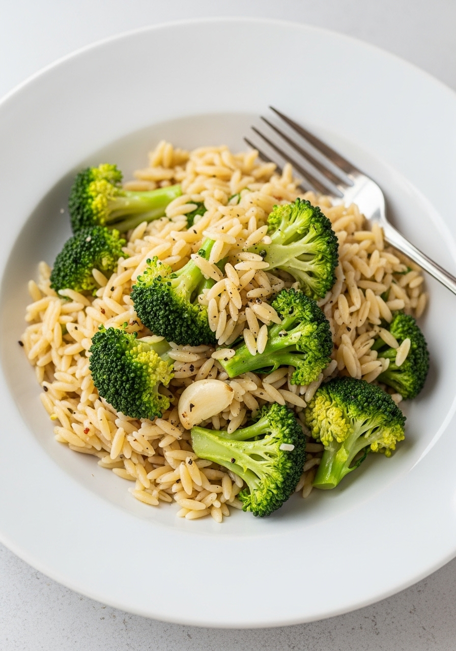 This easy-to-make side dish features orzo, a pasta that resembles rice, tossed with vibrant broccoli, aromatic garlic, and olive oil. It pairs wonderfully with grilled fish or chicken, but can also stand alone as a satisfying main course.
