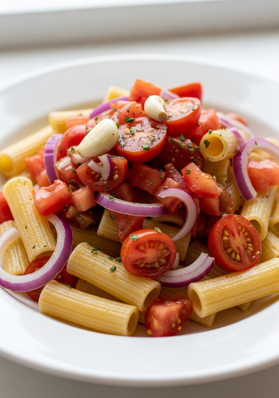 Present this delightful Bruschetta Pasta Salad at your upcoming barbecue or summer gathering. It’s an ideal light dish for the season, bursting with fresh plum tomatoes, creamy mozzarella, fragrant basil, and a touch of balsamic glaze to tie it all together.
