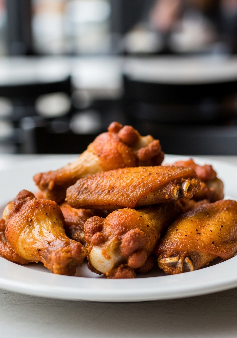 In a spacious mixing bowl, combine the chicken wings with 2 tablespoons of hot sauce, vinegar, oregano, paprika, garlic powder, chili powder, a pinch of salt (1/4 teaspoon), and black pepper according to your taste preferences.
