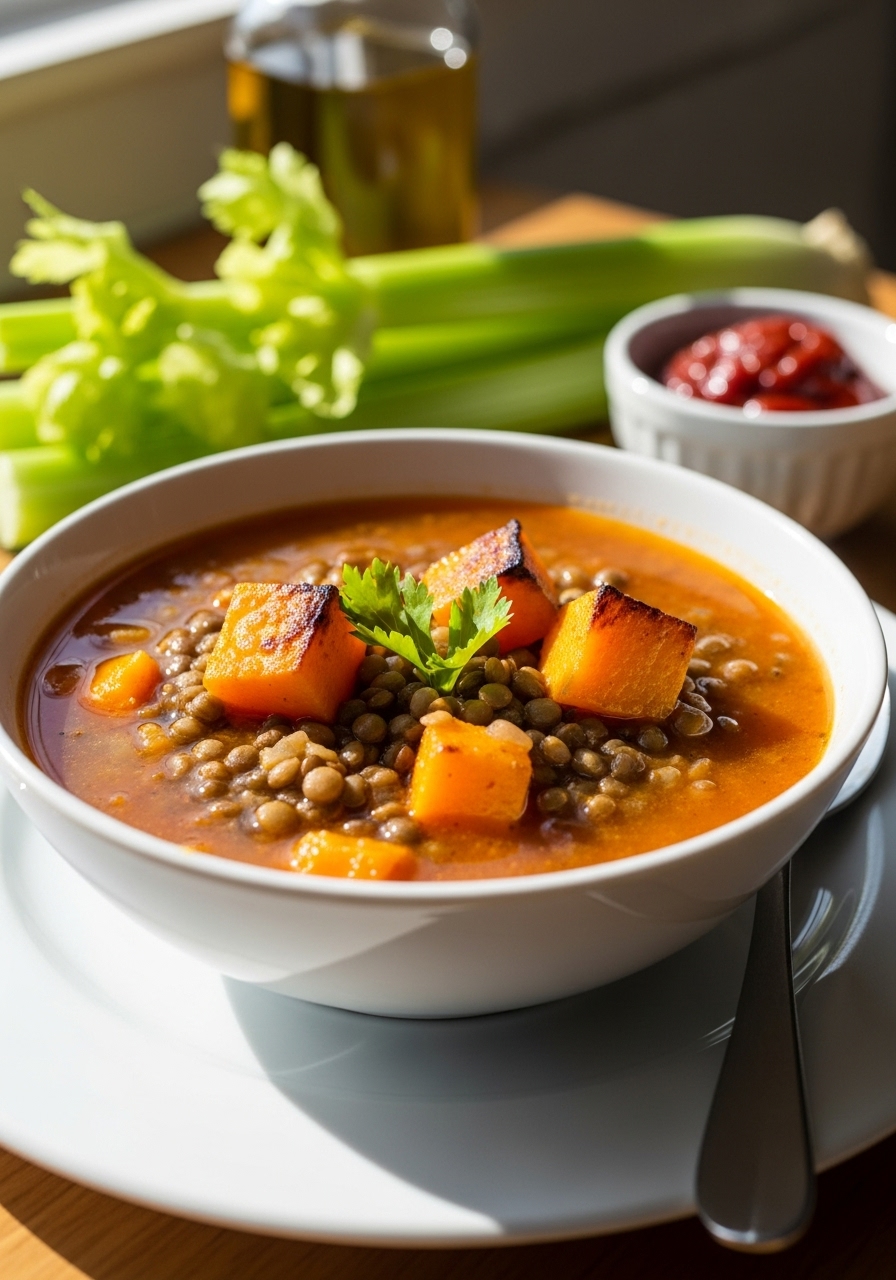 This hearty Butternut Squash Lentil Soup is both soothing and packed with nutrition. The combination of tender butternut squash, wholesome lentils, vibrant kale, and aromatic leeks creates a deliciously satisfying dish.
