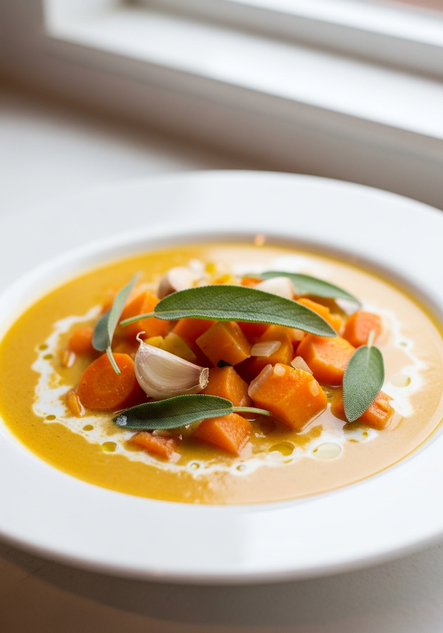 Remove the sage leaves from the pot and, using an immersion blender, blend the soup until it reaches a smooth consistency.