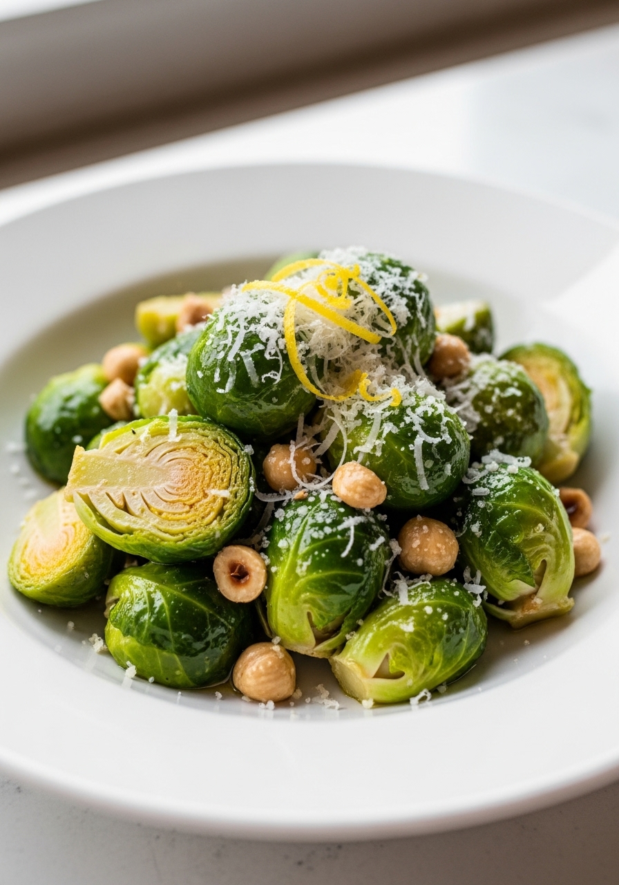 "Cacio e Pepe Brussels Sprouts reimagines the traditional Italian favorite by replacing pasta with finely shredded Brussels sprouts, offering a delightful low-carb alternative."