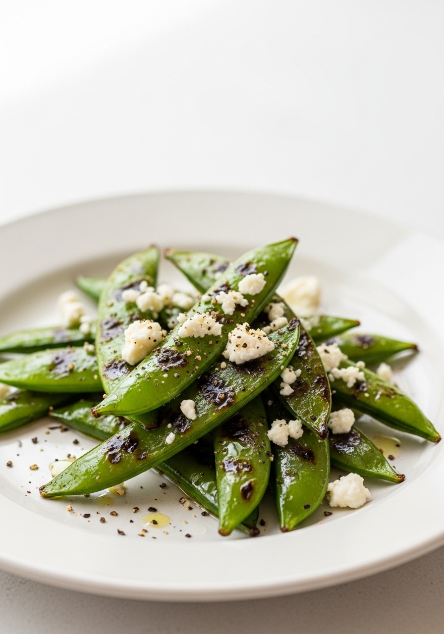 "Grilled Sugar Snap Peas with Lemon and Feta bring a delightful crunch and a burst of freshness, making them an effortlessly quick and vibrant side dish perfect for springtime. You'll absolutely adore this simple yet flavorful addition to your table!"
