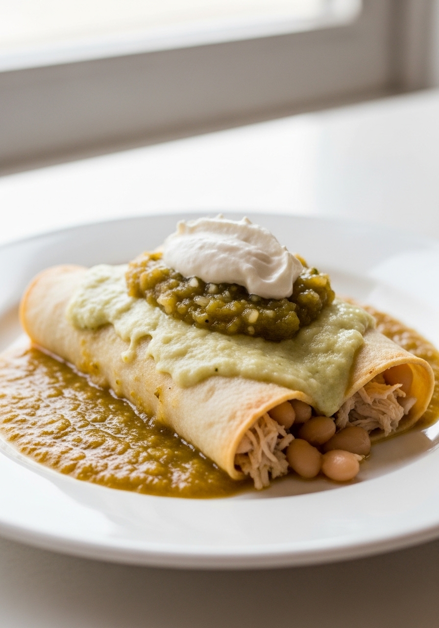 Spread approximately 1/4 cup of the enchilada sauce evenly across the bottom of a 9×13-inch baking dish. Take each tortilla and fill it with 1/3 cup of the chicken and white bean mixture.