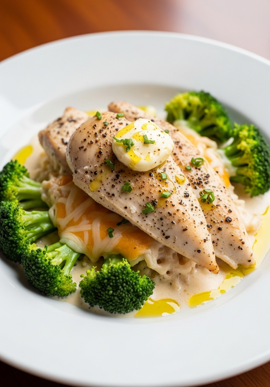 Drizzle half of the prepared sauce over the broccoli, stirring to ensure it is well-coated. Place the chicken pieces on top and pour the remaining sauce over it.