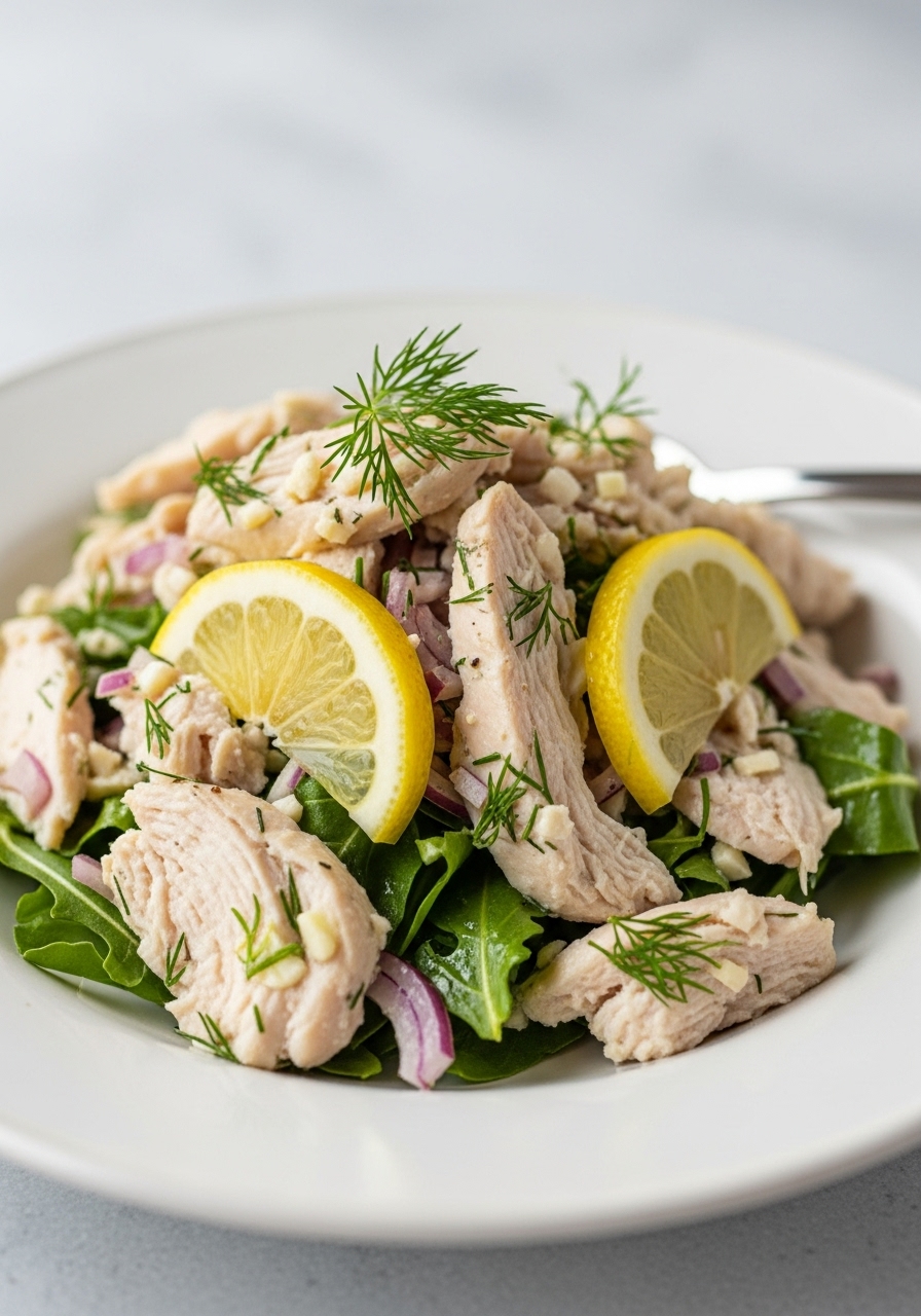 This delightful and nutritious chicken salad features tender breast meat from a pre-cooked rotisserie chicken, brightened with zesty lemon and fragrant dill. Quick to prepare and effortlessly simple, it suits a variety of dietary preferences, including low-carb, keto, Whole30, Paleo, and Weight Watchers.