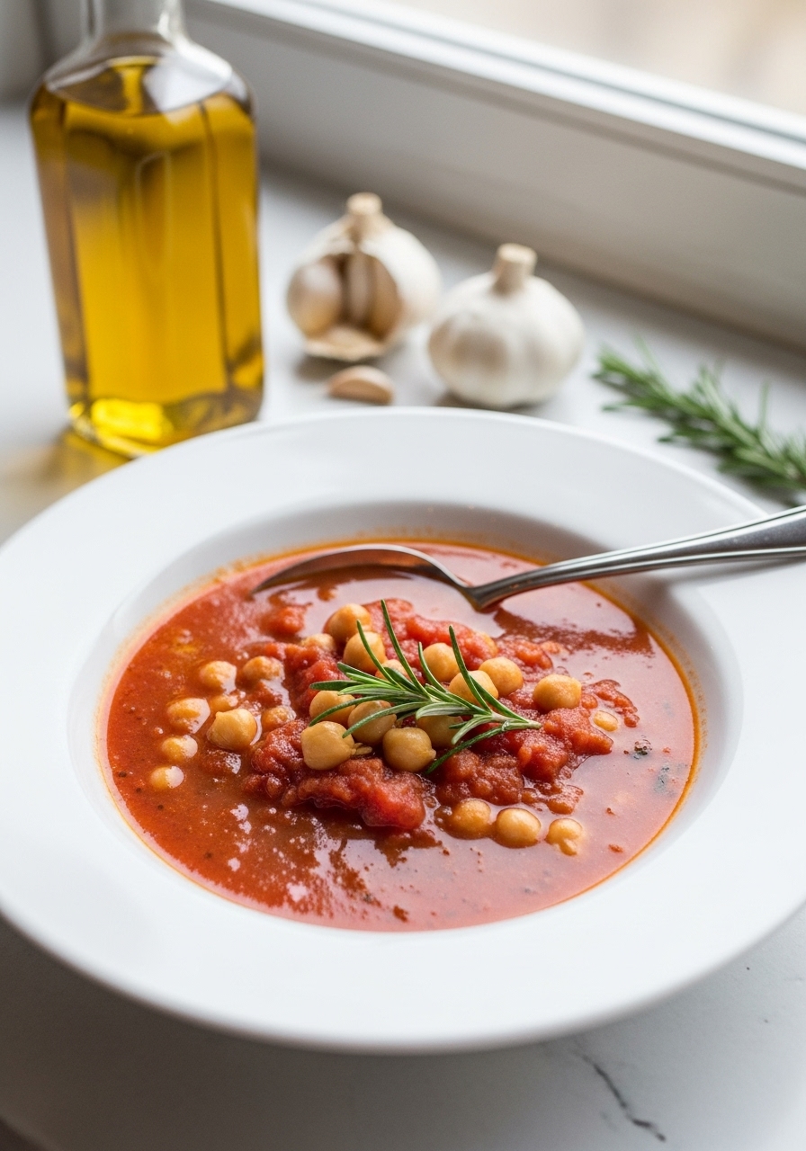 This Chickpea Tomato Soup is a comforting and simple dish, packed with chickpeas and vegetables that create a satisfying experience in every spoonful.
