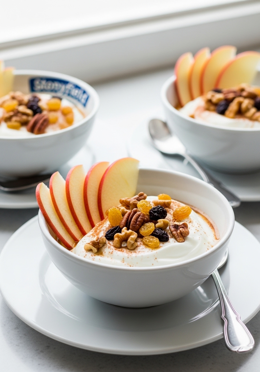 "Start your day with these delightful Cinnamon Apple Yogurt Bowls, offering all the flavors of apple pie but without the pastry!"