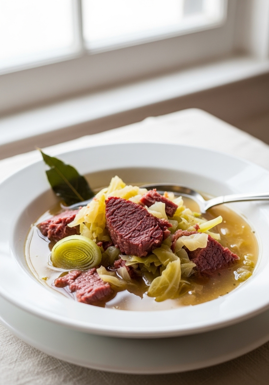 Indulge in a delightful one-pot meal with our Corned Beef and Cabbage Soup, featuring tender cabbage, hearty potatoes, vibrant bell peppers, and fragrant herbs. All of these ingredients meld together on the stovetop with savory corned beef, offering a deliciously unique take on a beloved Irish classic!
