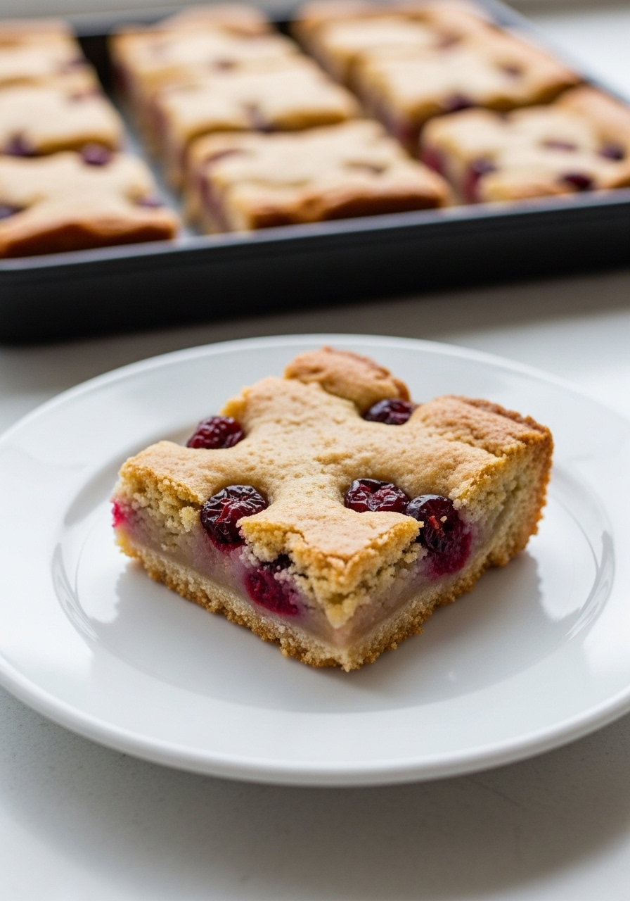 Gently fold in the white chocolate chips and 1/3 cup of cranberries. Transfer the batter to the prepared baking pan, using the back of a measuring cup to spread it out evenly.