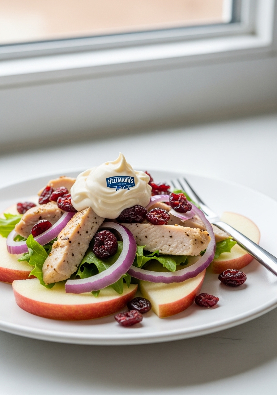 Make the Chicken Salad: In a medium-sized mixing bowl, combine the cooked chicken, diced celery, mayonnaise, chicken broth, dried cranberries, and chopped red onion. Mix thoroughly until all ingredients are well incorporated. Season with salt and pepper according to your preference.