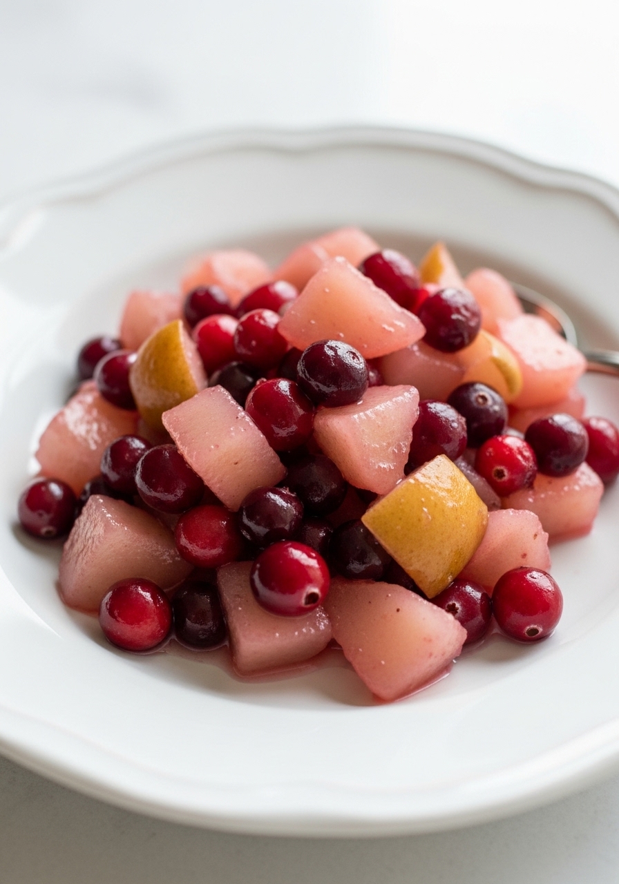 "Whip up this SIMPLE 3-ingredient sauce in no time! This cranberry sauce recipe is my favorite for the festive season. The delightful sweetness of the pears beautifully balances the tangy cranberries, making it the ideal addition to your Thanksgiving spread."