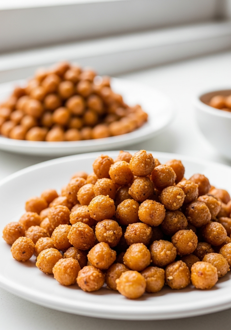 "Enjoy a delightful and nutritious nibble with these Air Fryer Chickpeas, packed with fiber and perfect for snacking or enhancing your salads! They're incredibly simple and fast to prepare using your air fryer."