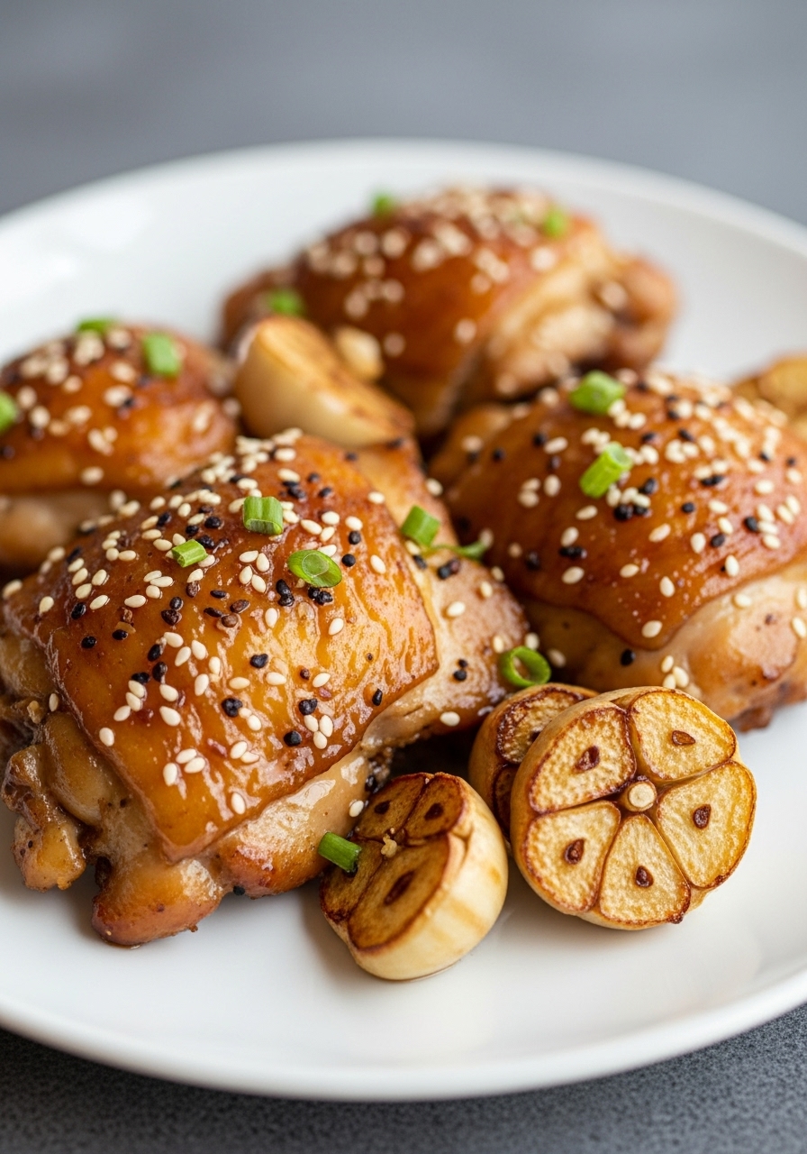To serve, spoon the chicken and sauce over a bed of rice, and finish by sprinkling sesame seeds and chopped scallions on top as a garnish.