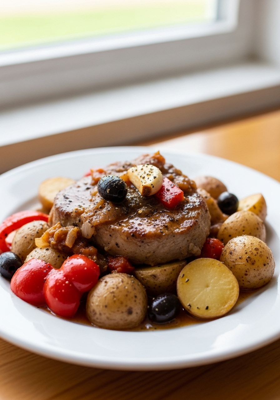 Indulge in these tender pork chops, slow-cooked to perfection with a vibrant blend of Latin-inspired spices. Bathed in a delicious sauce that features tomatoes, olives, bell peppers, and hearty potatoes, these chops become so tender that they practically disintegrate with a gentle touch. Get ready for a comforting meal that’s bursting with flavor!