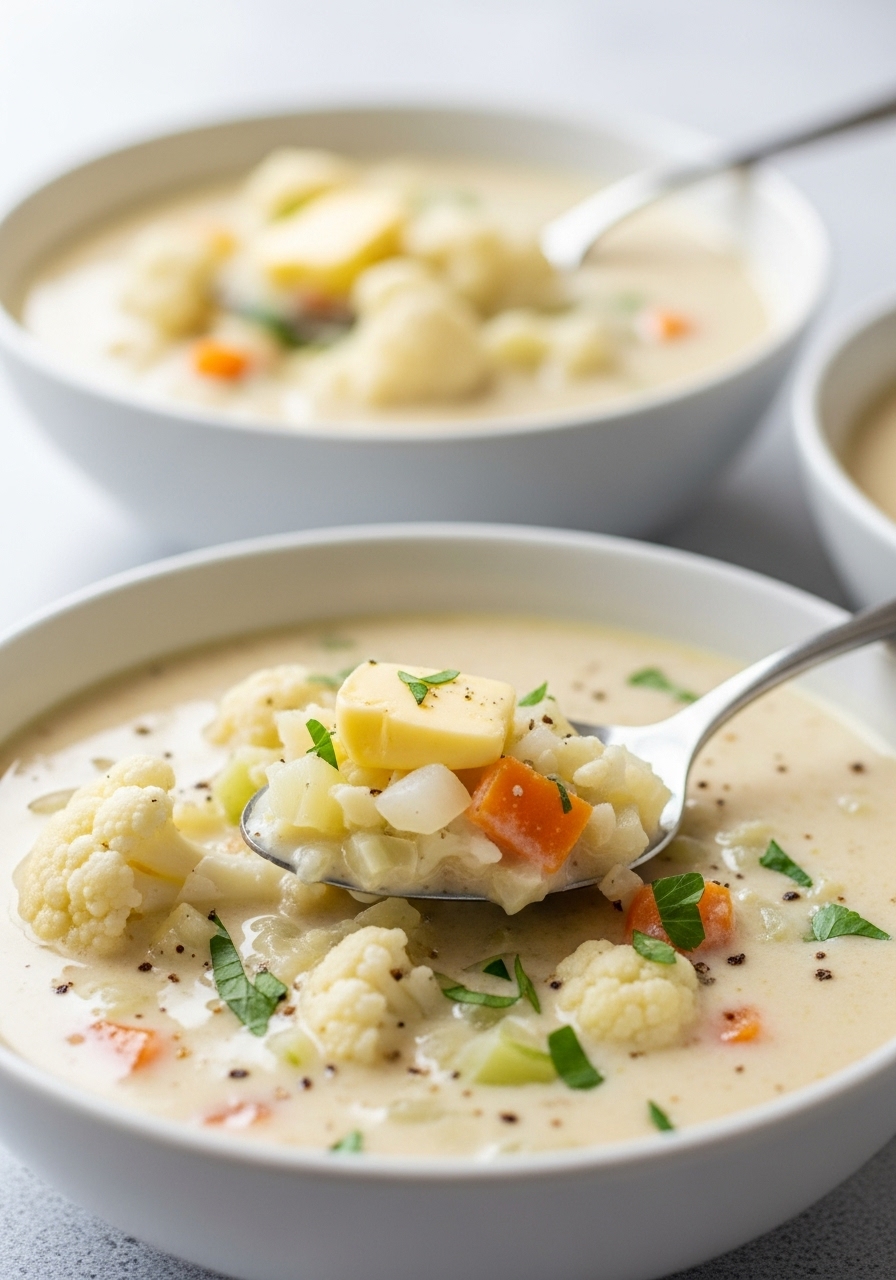 "Growing up, my father’s Creamy Cauliflower Soup was a beloved dish, crafted with only five simple ingredients!"