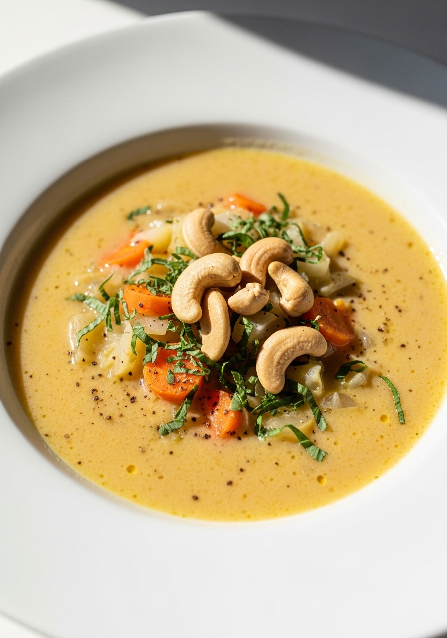 While the soup simmers, prepare the cashew cream using a blender. Combine the cashews with the remaining 1 cup of water and blend until smooth. (If you modify the number of servings, just ensure you maintain a 1:1 ratio of cashews to water.)
