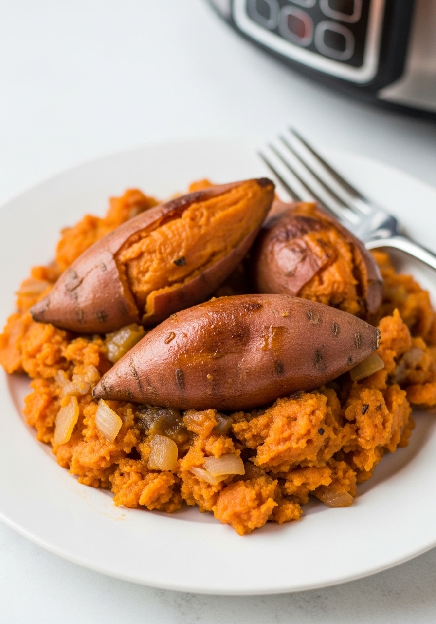 "The simplest and my preferred method for preparing baked sweet potatoes is by using a slow cooker instead of the oven!" Recipe title: "Effortless Slow Cooker Sweet Potatoes"