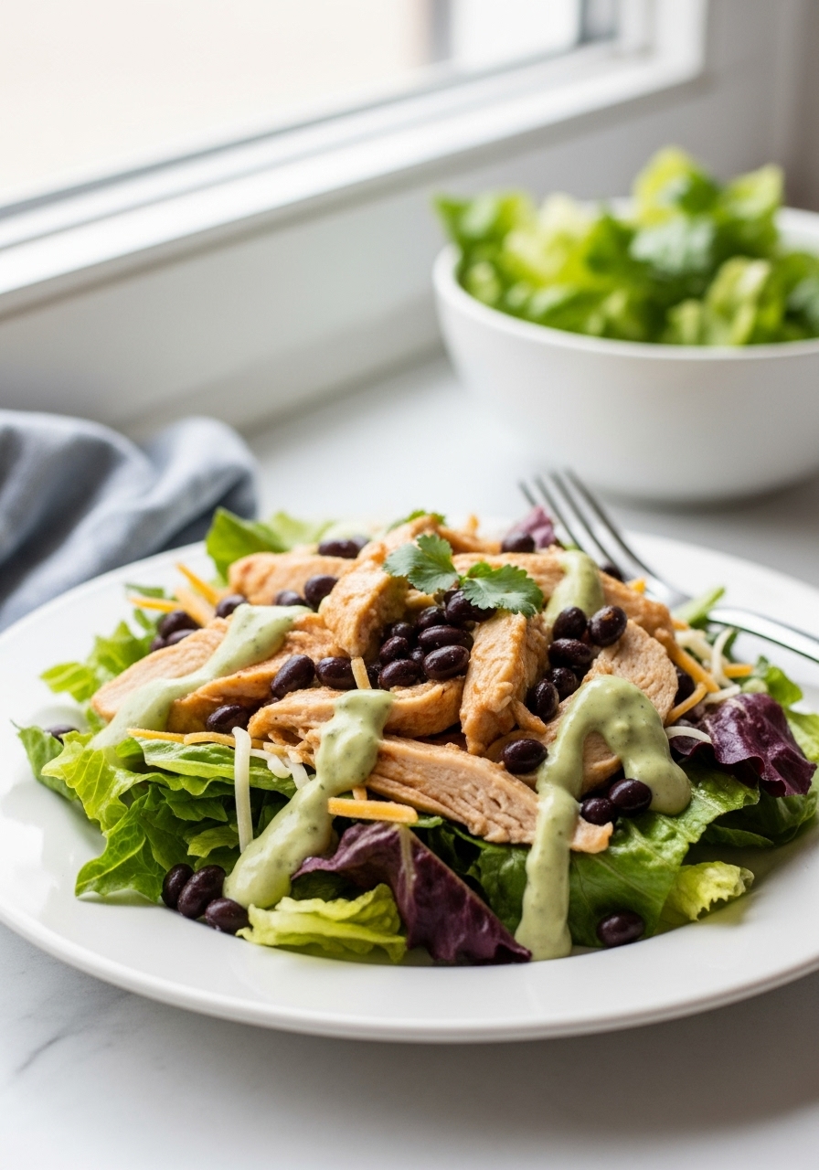 This effortless slow-cooked chicken taco salad is packed with fiber and protein, making it a filling meal that comes in at under 300 calories. Believe me, you'll hardly notice the absence of tortillas!