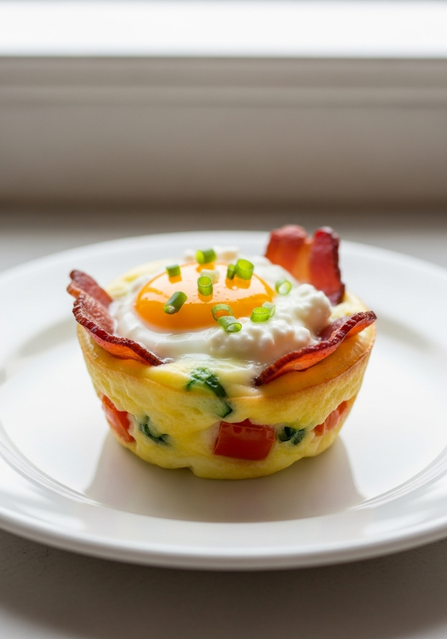 Prepare these scrumptious, protein-packed Egg White Muffins featuring turkey bacon, cottage cheese, and a medley of vegetables for a convenient breakfast that’s perfect for a busy morning!