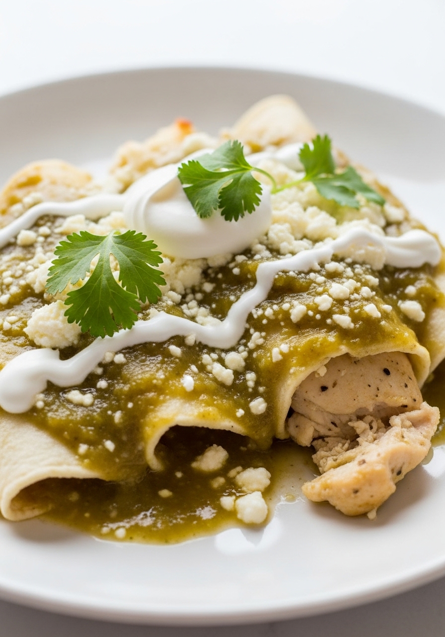 These Enchiladas Verdes, also known as Green Enchiladas, are a classic dish from Mexico that features soft white corn tortillas filled with succulent chicken breast and topped with zesty salsa verde and crumbled queso fresco. This delightful and genuine meal is not only quick to prepare but can be on your table in under an hour, making it a perfect choice for a delicious weeknight dinner.
