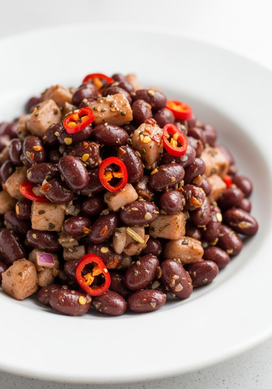The Fiesta Bean Salad combines hearty black beans and chickpeas with fresh tomatoes, vibrant cilantro, and creamy avocado, all drizzled with a zesty cumin-lime dressing for a refreshing twist.