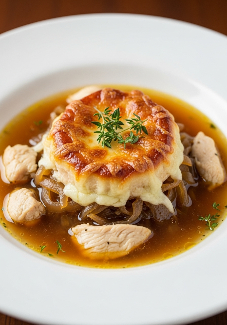 Indulge in this protein-packed French Onion Chicken Soup, featuring sweet caramelized onions, a hearty bone broth, and a decadent topping of melted, golden cheese. It’s the ideal choice for those seeking a comforting and flavorful dinner experience.