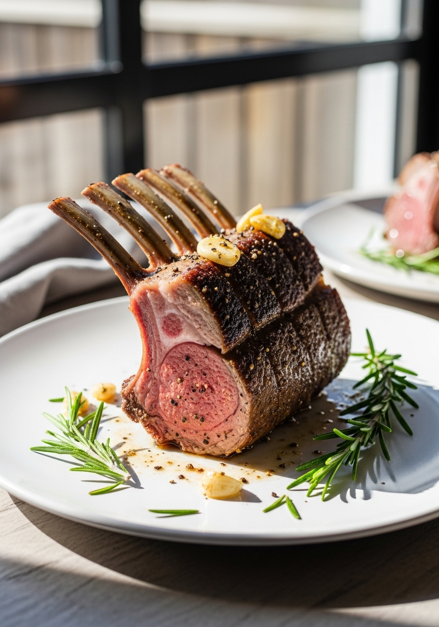 Succulent rack of lamb, roasted to perfection in the oven and infused with fragrant rosemary, zesty lemon juice, and aromatic garlic, makes an ideal dish for hosting gatherings and is surprisingly simple to prepare!