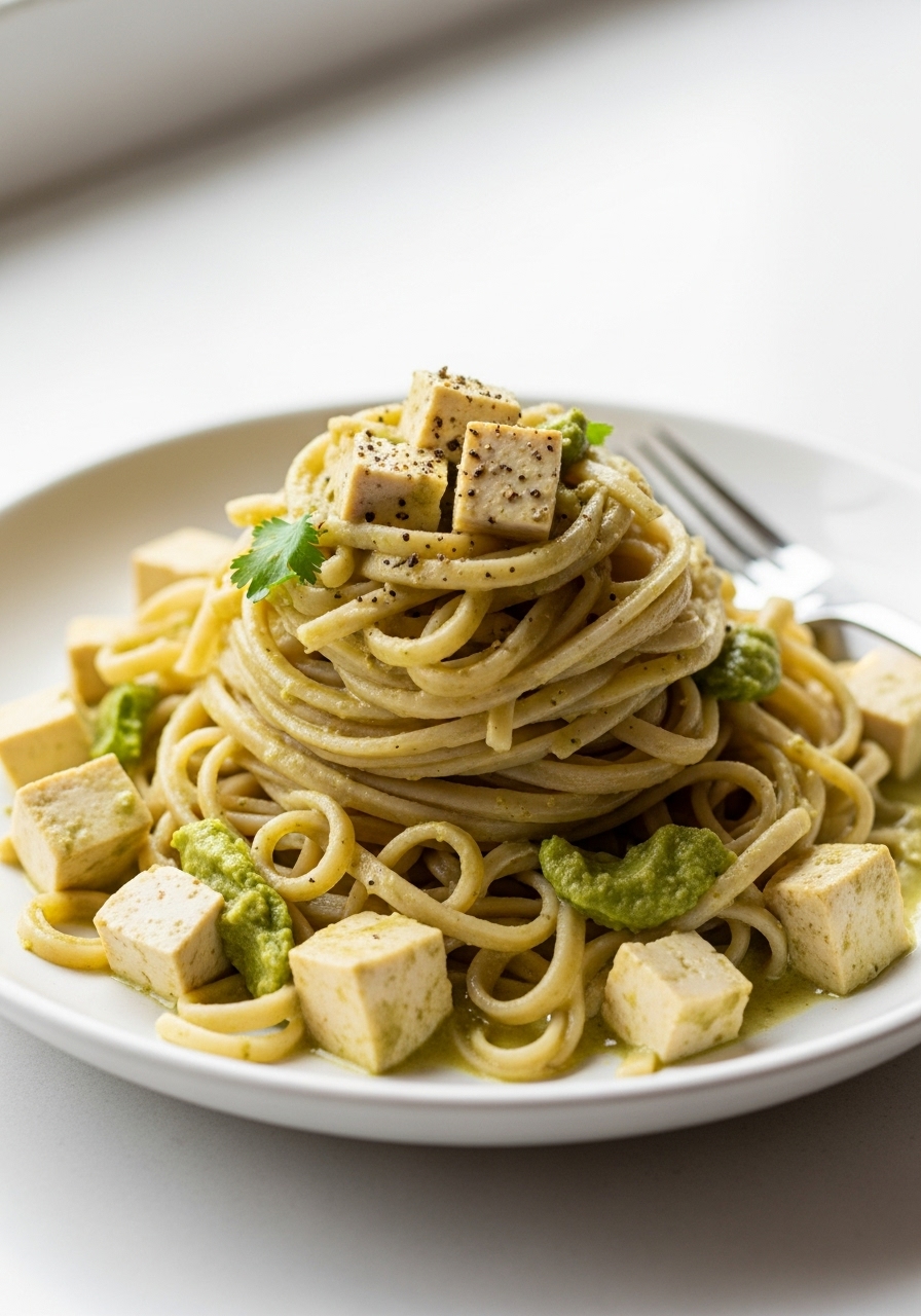 This easy-to-make Green Curry Noodles dish features a luscious coconut sauce enriched with tofu, aromatic Thai green curry paste, and a medley of fresh vegetables.
