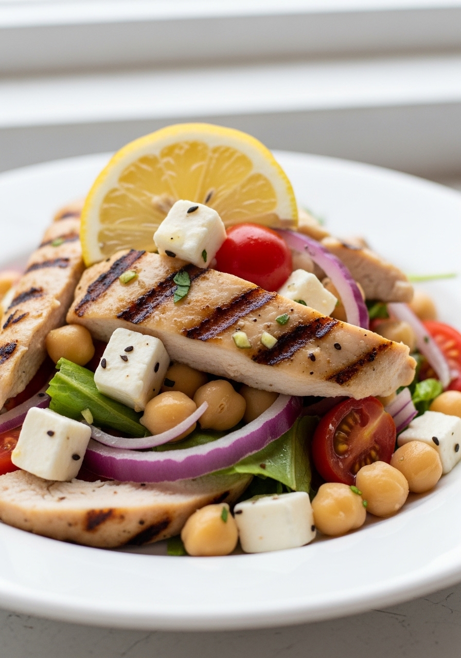 The Grilled Chicken Feta Chickpea Salad is a vibrant and straightforward high-protein meal that’s perfect for a quick lunch. Whether you’re at the office, enjoying a day at the beach, or on the move this summer, this salad can be enjoyed cold, making it an ideal choice for any summer outing.