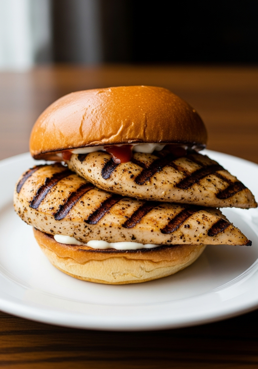 Indulge in my go-to Grilled Chicken Sandwich, featuring juicy, pickle-brined chicken breast grilled to perfection, topped with a vibrant slaw and a kick of spicy mayo – absolutely delicious!