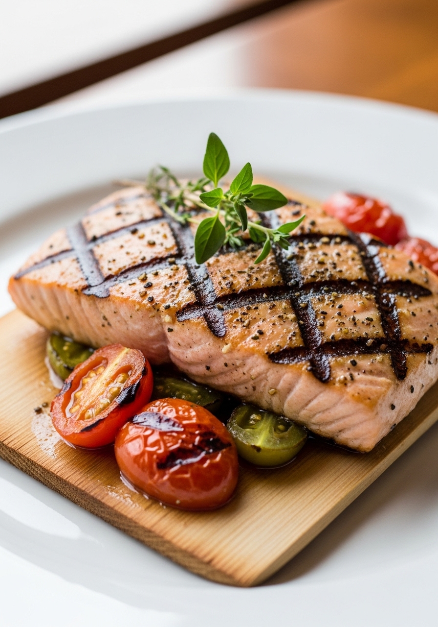 Once the salmon is ready, spoon the tomato mixture over the top and serve immediately.